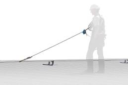 This life line was designed for open walk ways and or low parapet roof type working situations with long travel distances where the possibility of a fall exists. Safe Walk™ incorporates simplicity and low maintenance in the design as well as an easy to use system where all parts, components and accessories are permanently present, ready to be used.